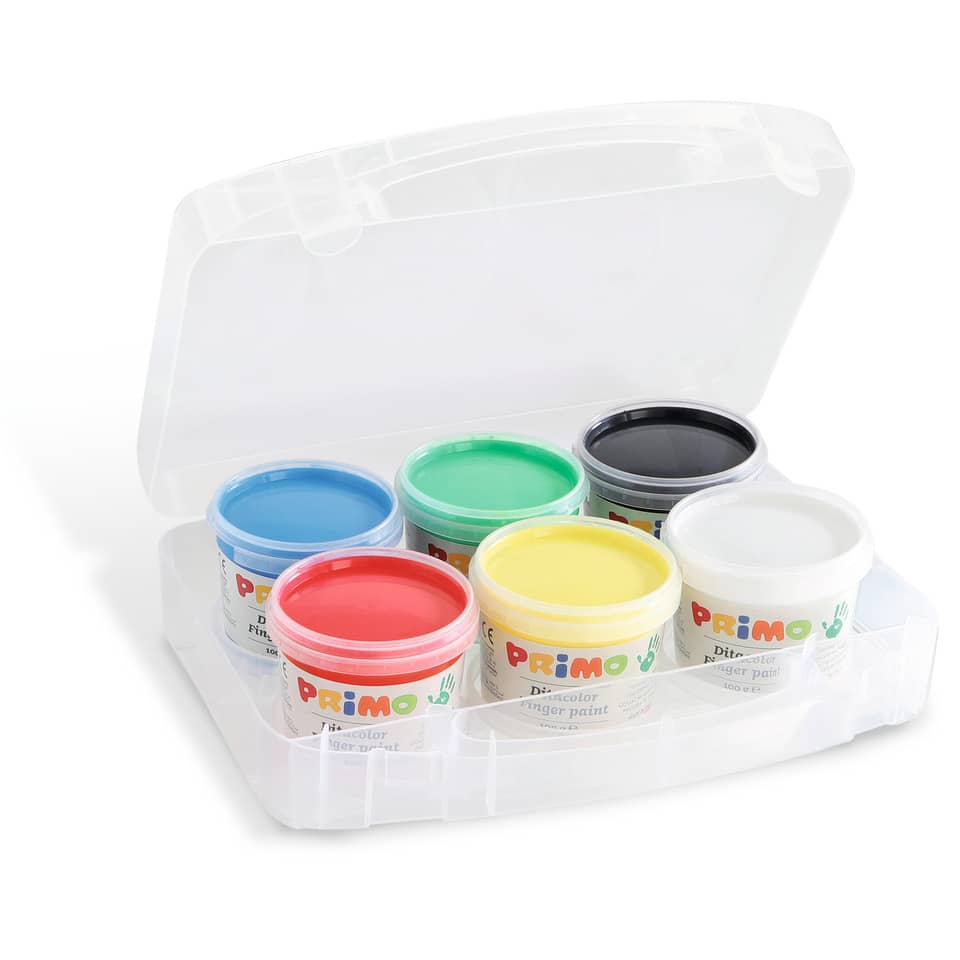 Tempera a dita Primo 100gr - valigetta 6 Colori Assortiti in vasetti in polipropilene