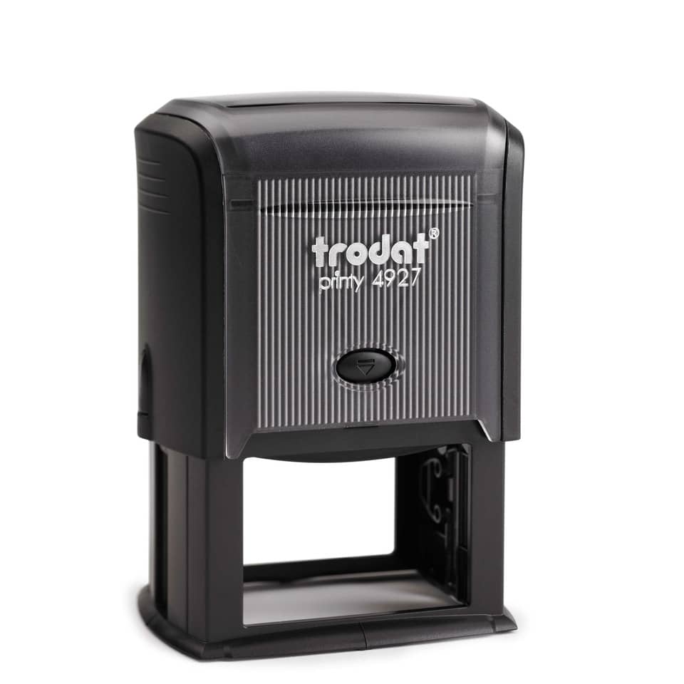 Timbro di testo autoinchiostrante personalizzato TRODAT PRINTY 4927 NERO - 60 x 40 mm - max 10 righe testo ROSSO. Leggero e compatto. Massima qualità delle impronte. Inchiostro indelebile in conformità alla norma DIN ISO 14145-2. Sostituzione della cartuccia più semplice e pulita. Posizionamento preciso grazie alla base trasparente. Prodotto in materiale riciclato post consumo.
