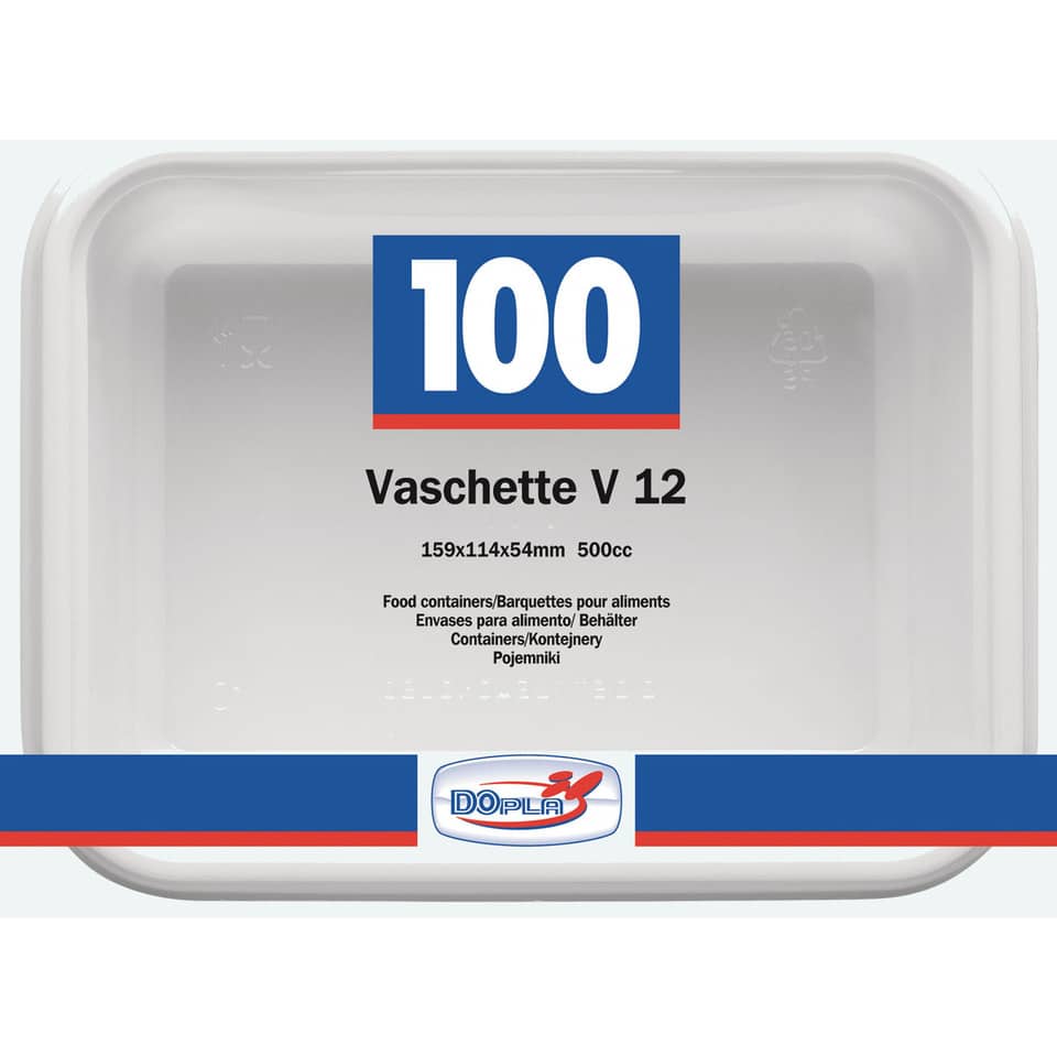 Vaschette Bianche V/12 in polistirene 155x115x52 mm Dopla Professional 600 ml – 7013 (conf.100)